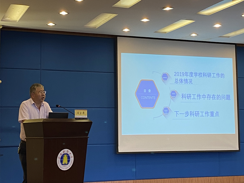 2020年5月9日下午15:00,学校在致远楼415会议室,召开2019年度科研工作总结暨经验交流汇报会。副校长王敏出席并讲话,各学院、科研院所行政工作主要负责人、分管科研工作负责人、科研秘书以及科研处全体工作人员参会。会议由科研处副处长段春锦主持。