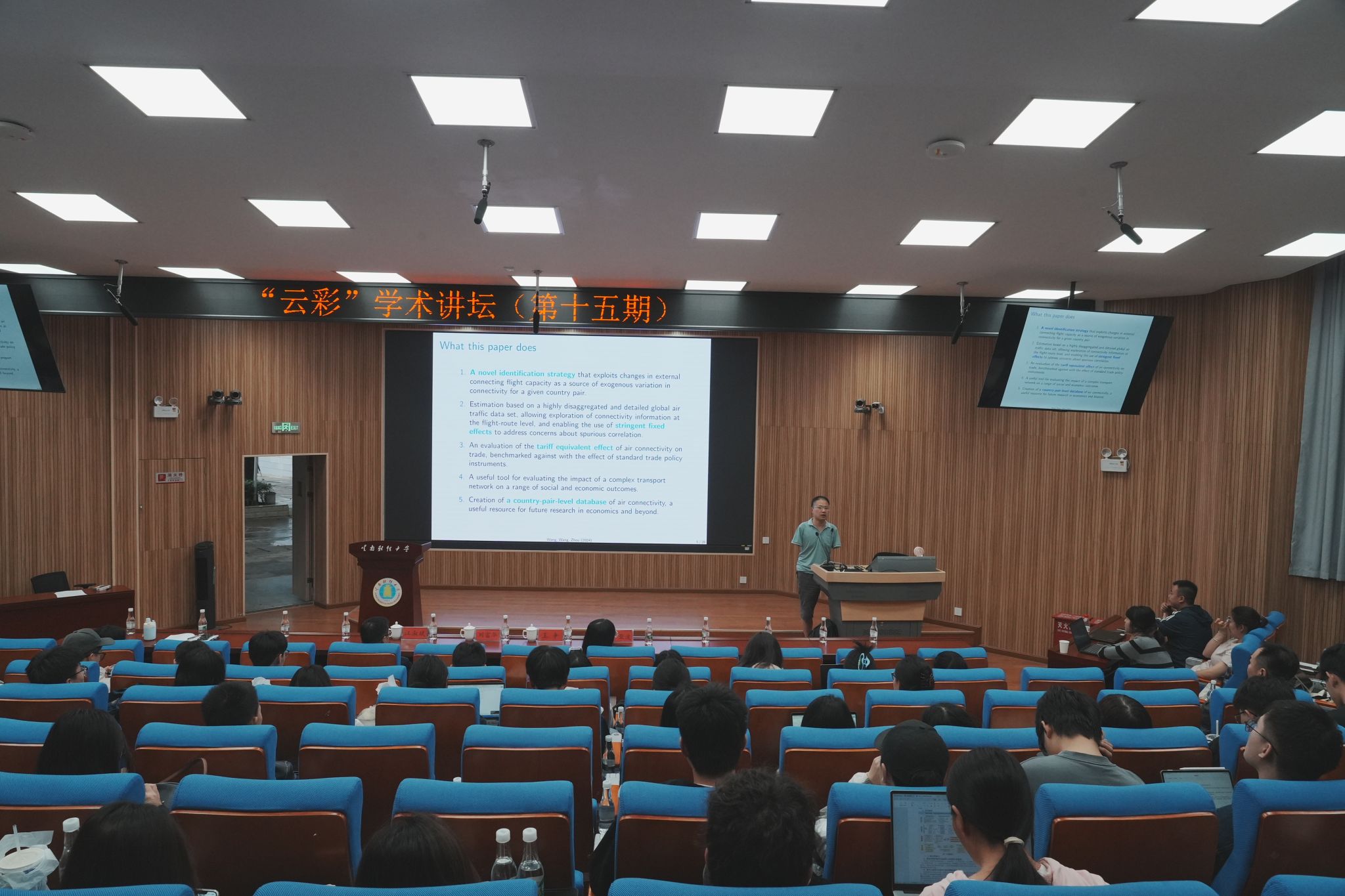 在交流提问环节,现场师生围绕国家间贸易方式、数据选取处理以及拓展研究等方面进行了深入讨论。此次讲座为全校师生提供了一个与国际知名学者交流的平台,推动学校在基础设施建设研究领域的学术研究和国际合作,鼓励师生投身于宏观环境与实践创新中积极探索。