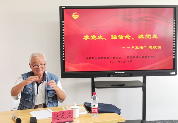 为持续扎实推进党史学习教育走深走实,买球充分发挥“五老”作为时代实践者、亲历者、开创者、见证者、建设者的优势及模范作用,让爱党爱国情怀根植云财青年心中,让红色基因、革命薪火代代相传,5月28日下午,校团委、离退休处继续开展“学党史、强信念、跟党走”之“五老”进校园主题系列活动。