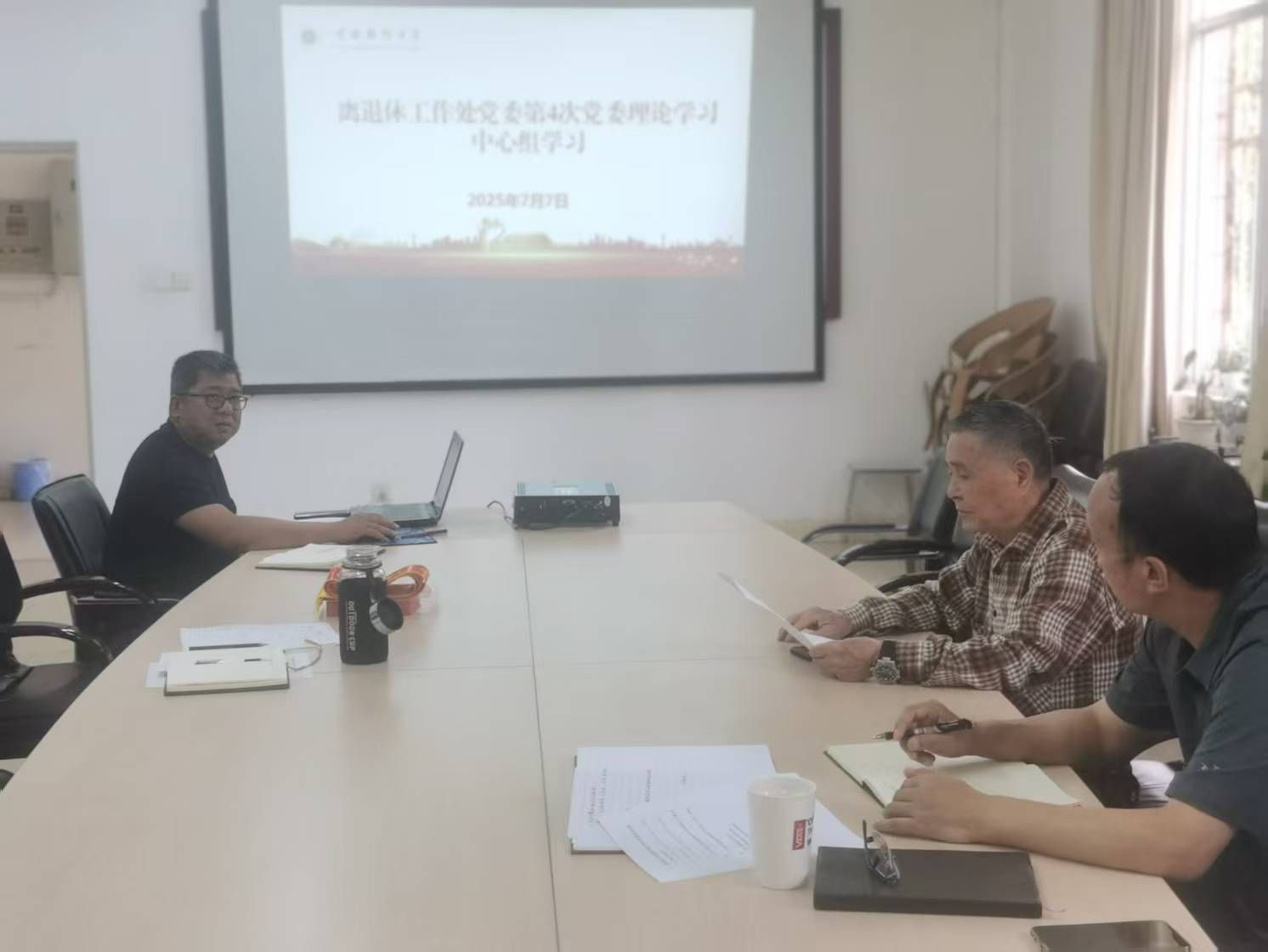 2025年7月7日,离退休处党委组织召开2025年第4次党委理论学习中心组专题学习,深入学习习近平总书记关于教育的重要论述,重点学习了习近平总书记2024年9月9日在全国教育大会上的重要讲话。本次学习由离退处处长高天云领学,处党委委员、纪委委员、组织员参加学习。