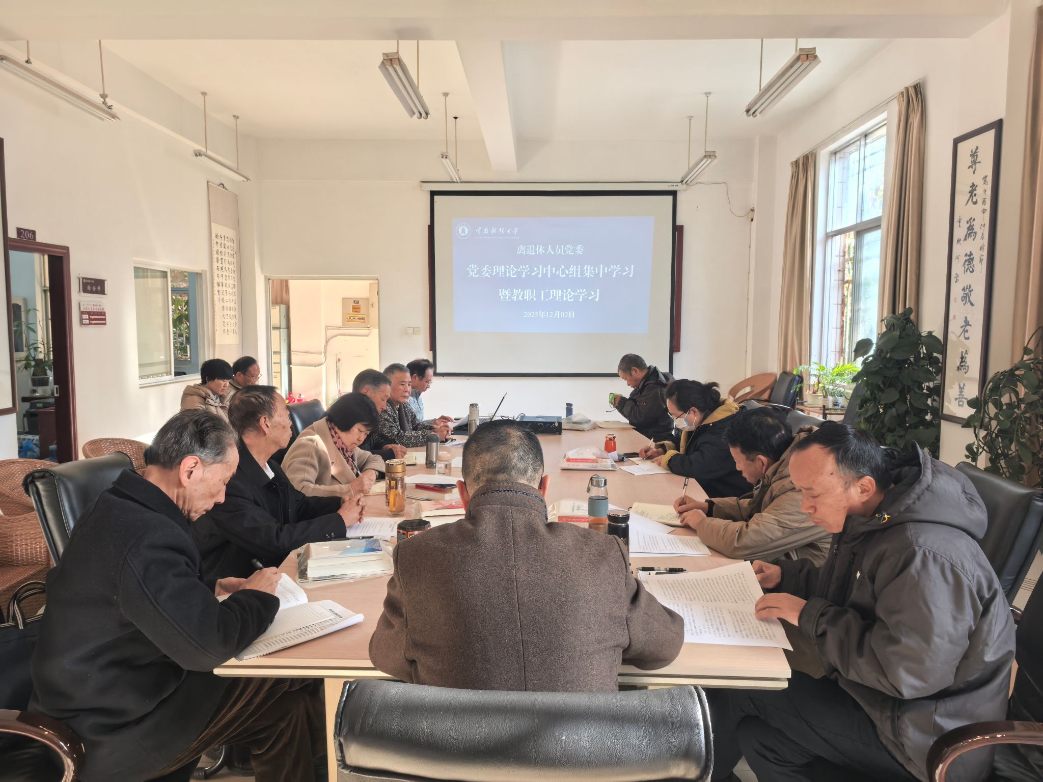 12月2日,离退休人员党委组织开展2025年第7次党委理论学习中心组(扩大)学习,专题学习贯彻党的二十届四中全会精神。本次学习由离退休人员党委书记杨秀伟领学,党委委员、所属党支部书记及离退处全体在职职工参加学习。