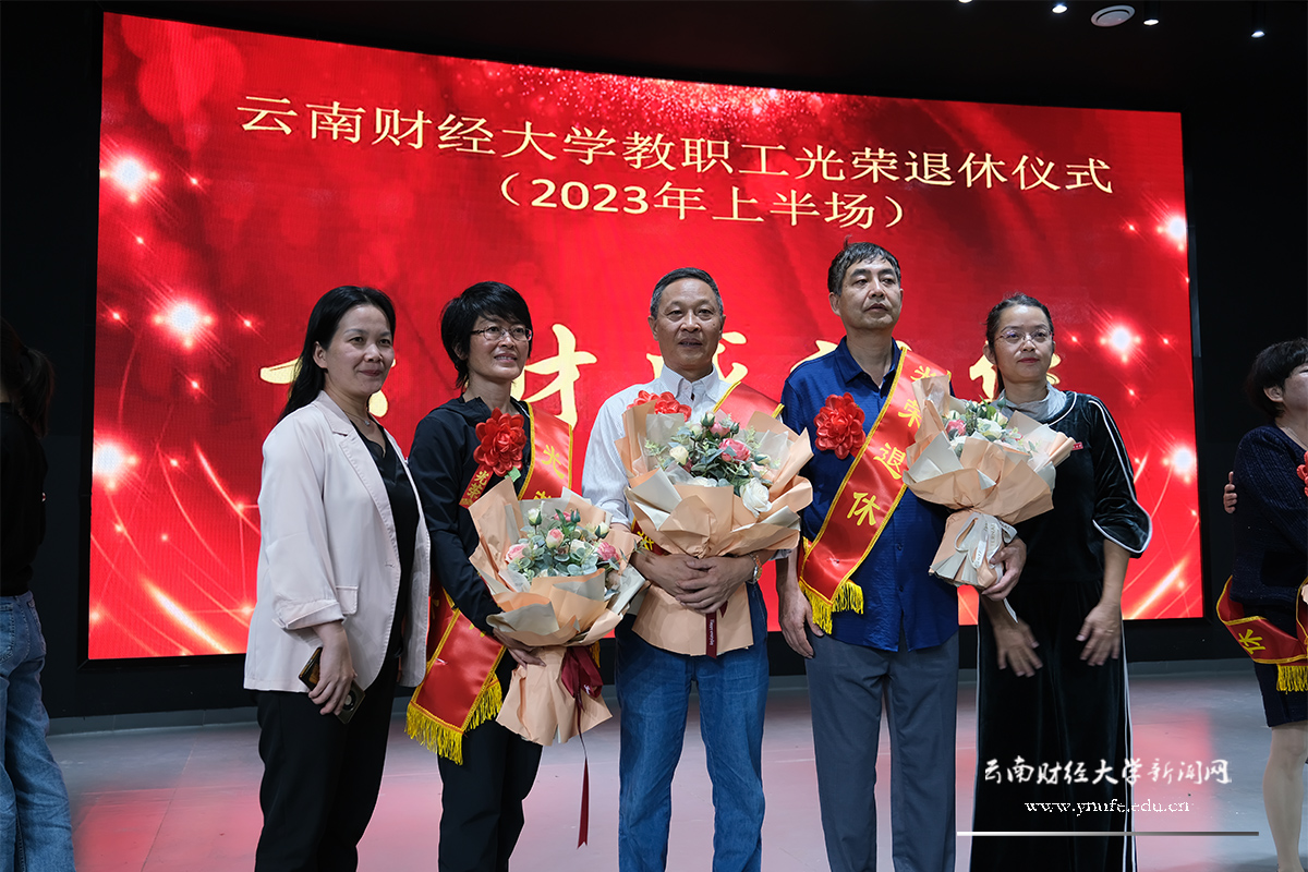 王建颖表达了对新退休教职工们的感谢之情、感恩之心、敬重之意。她表示,新退休教职工是学校建设发展中重要的奉献者、参与者、见证者,“求实创新”的云财校风,“敢为人先、自强不息”的云财精神,正是一代又一代云财人拼搏奋斗出来的,只有把学校的精神品格、文化基因传承好、发扬好,学校才能欣欣向荣,不断取得新的更大成绩。她强调,匠心守望初心,师道传承大道,新进教师要学习退休教师身上的优良品德和作风,在三尺讲台上赓续云财精神和师德师风。她希望新退休教职工们做好人生的第二规划,继续关心支持学校的建设发展,为学校建设和经济社会发展贡献智慧力量。同时她祝愿新退休教职工们生活幸福、退有所为、退有所乐,书写美好的人生新篇章。
