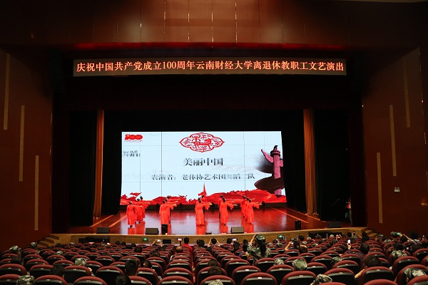 为热烈庆祝中国共产党成立100周年,离退休工作处和老体协提前半年准备,组织老体协艺术团各支队伍精心排练了舞蹈、器乐合奏、诗歌朗诵等13个节目,演员们一个个热情高涨。演出在歌舞《共圆中国梦》中拉开序幕,以全场合唱《没有共产党,就没有新中国》结束。所有节目均由离退休教职工自编自排,整场演出气势宏大、精彩纷呈、高潮迭起,热情讴歌了我们党100年来不平凡的奋斗历程和伟大成就,充分表达了感党恩、跟党走的坚定情怀,汇聚出强大的正能量。
