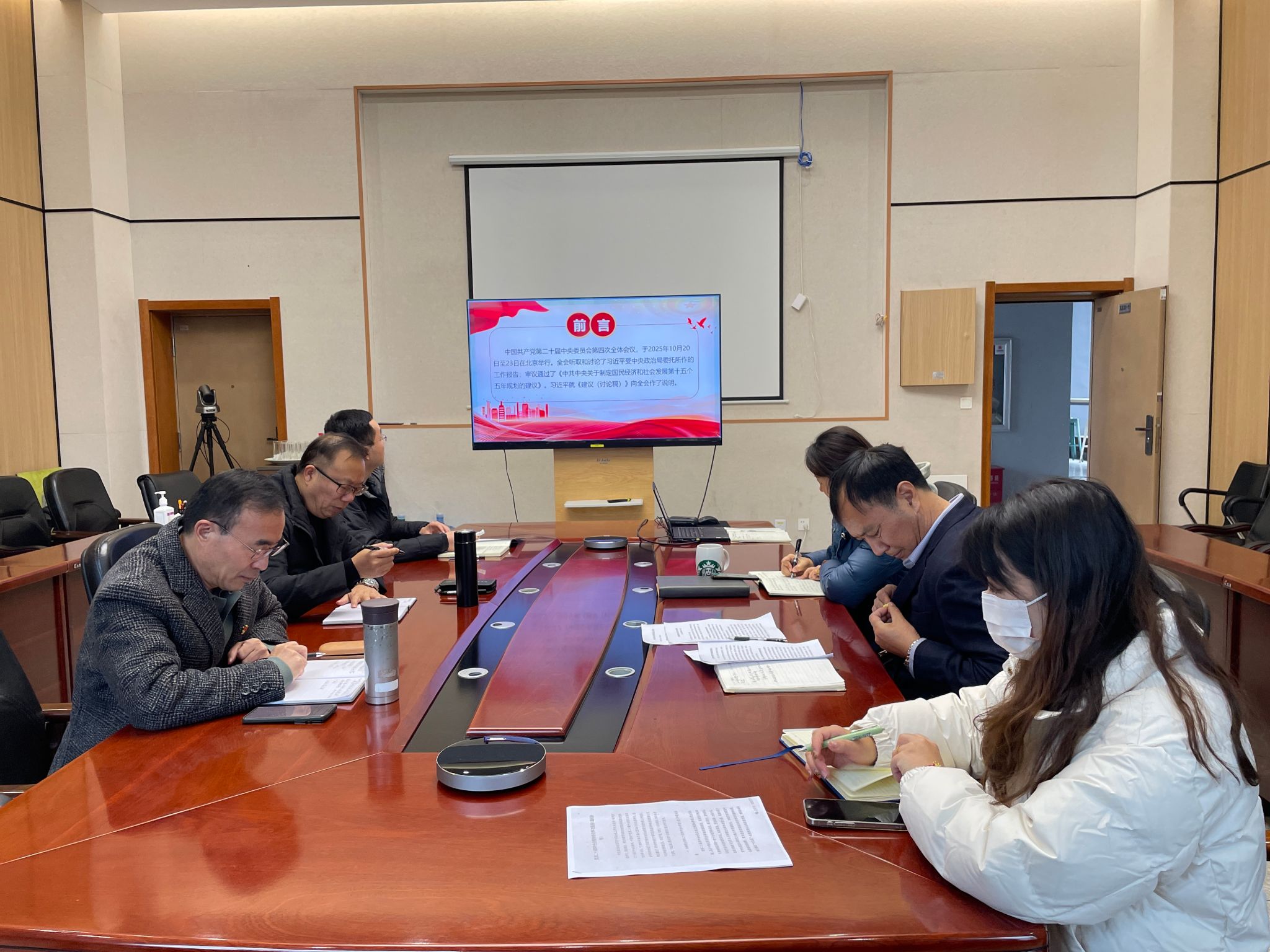 朱睿领学了党的二十届四中全会精神,重点学习了党的二十届四中全会公报内容、“十五五”时期经济社会发展的主要目标及努力方向等方面内容。朱睿表示,要切实加强对党的二十届四中全会的深入学习并推动学习在学院师生中走深走实,把握好新时期学院高质量发展所面临的机遇与挑战,将党的最新理论与决策部署融入到学院的教学、科研、管理和日常工作之中。与会党委委员结合学院发展实际和各自分管的工作,从不同角度交流了学习心得体会。