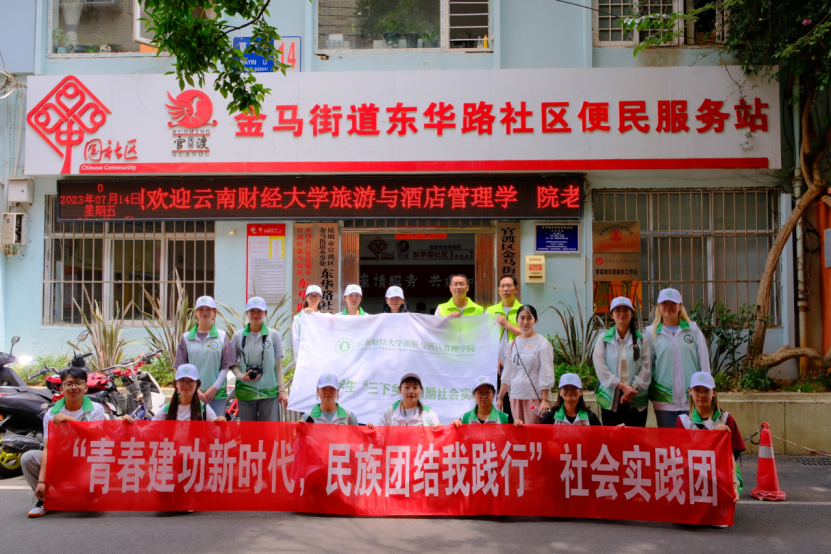 7月14日,十大买球官方网站旅游与酒店管理学院 “青春建功新时代,民族团结我践行”社会实践队前往官渡区金马办事街道东华路社区和昆明瀑布公园开启第四天实践调研之旅。