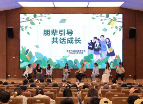 为进一步发挥朋辈教育的积极作用,加强对低年级大学生的成长指导,旅游与酒店管理学院于2024年5月31日下午在鹏云一附101报告厅成功举办了“朋辈引导,共话成长”优秀毕业生先进事迹分享会。学院学生管理科科长孙晓琼、辅导员杨倩、张瑞程及200余名同学到场参加活动。2024届优秀毕业生车惠恒、周维君、郑文倩、夏宇欣、李凤萍、邬梦雪、李树娇应邀做经验交流。此次活动以访谈形式开展,话题主要围绕大学生学业发展、社会实践、考研、就业等方面为低年级学生提供宝贵的成长经验和学业规划指导。