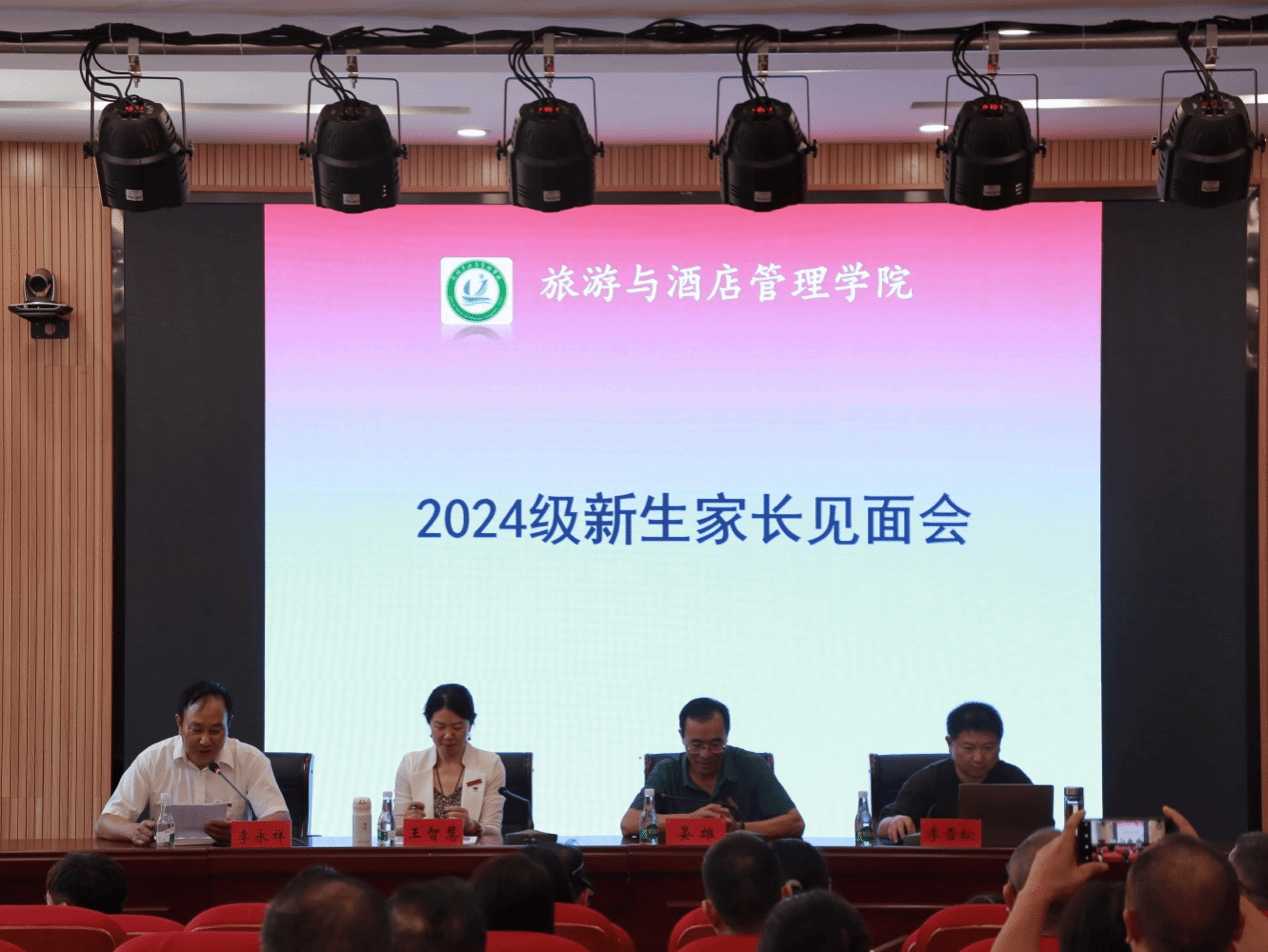 为促进新生家长对学校和学院的深入了解,强化家校共育理念,实现家校良性互动,8月24日下午,旅游与酒店管理学院在齐远楼报告厅举行2024级新生家长见面会。学院院长晏雄、党委副书记李永祥、副院长李雪松、副院长王智慧以及学院全体辅导员参加会,50余名新生家长参加座谈,会议由李永祥主持。