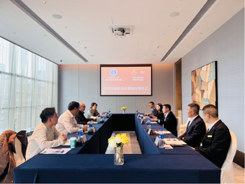 会上校企双方进一步就近期毕业生招聘、学生入职培养、低年级学生职业体验教育等事宜进行了交流,达成很多共识。会后,校企双方举行了“大学生创新创业基地”挂牌仪式。标志着双方的合作进入了一个新的阶段,将为学生提供更加广阔的创新创业空间和实习就业平台。相信在双方的共同努力下,校企合作必将结出丰硕的成果,为酒店培养更多高素质的创新型专业人才。