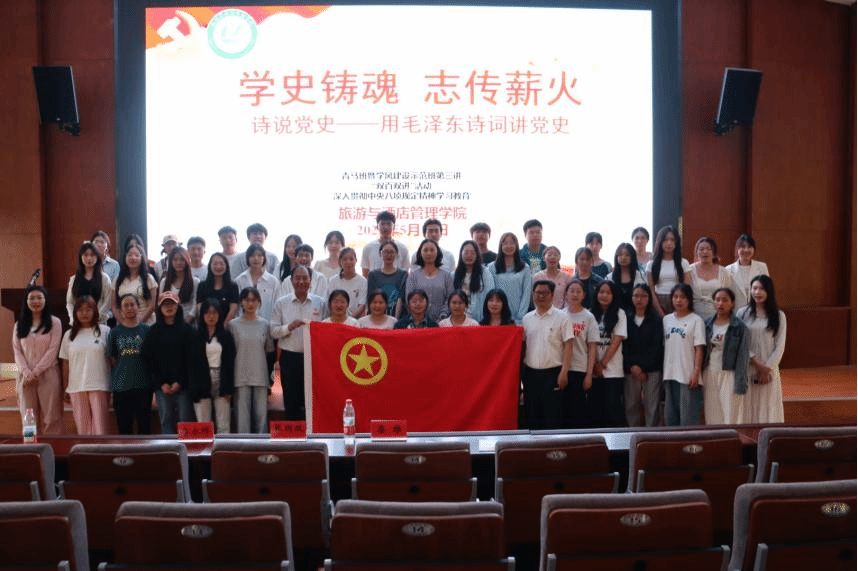 为认真扎实开展深入贯彻中央八项规定精神学习教育,5月16日下午,旅游与酒店管理学院在鹏云一附楼101报告厅举行以“学史铸魂,志传薪火”为主题的“双百双进”活动。本次讲座邀请中国演出行业协会理事、云南演艺集团党委副书记兼纪委书记张国政同志主讲。