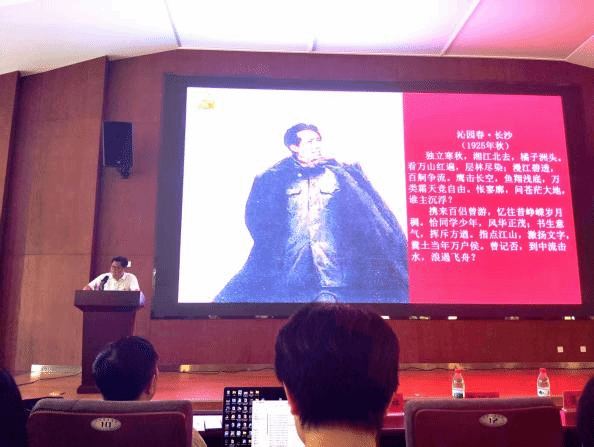 张国政以诗说党史——用毛泽东诗词讲党史为题,将诗与党史结合,系统梳理毛泽东诗词,热情高昂地为现场师生阐述了党的光辉历史。从少年时期《五言·井赞》的胸怀抱负、到大革命时期《沁园春·长沙》的远大理想,再到井冈山斗争时期《西江月·秋收起义》的壮志豪情,生动展现了毛泽东作为卓越的政治家和伟大的诗人,在缔造和建设新中国的历史进程中,不仅创作了气吞山河的不朽诗篇,也成就了举世公认的千秋伟业,形象地反映了中国共产党人救国救民的艰辛历程和波澜壮阔的中国革命史。现场师生在激昂慷慨的讲座中备受振奋,深入领悟了中国共产党为什么“能”。