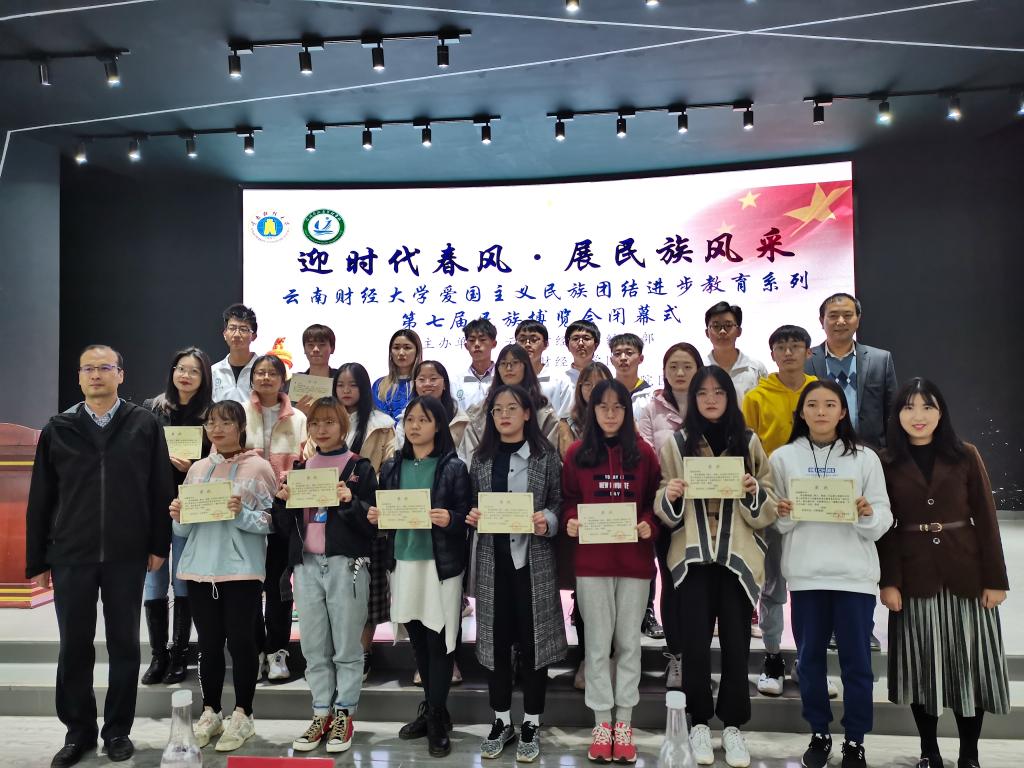 12月10日晚,游与酒店管理学院在北院路演大厅举行“迎时代春风,展民族风采”十大买球官方网站爱国主义民族团结进步教育系列第七届民族博览会闭幕式。学院党委书记张向英、学生科科长李永祥、团委负责人代丽虹以及各学院获奖同学参加活动。