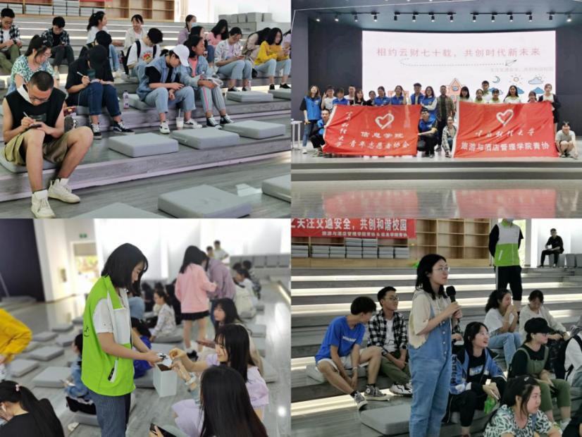 2021年,十大买球官方网站迎来了七十华诞。5月7日,为进一步增进大学生对交通安全的认真了解,增强自身的安全意识,旅游与酒店管理学院和信息学院携手举办了“相约云财七十载,共创时代新未来”之关注校园交通安全,共创和谐校园活动。两院共50名志愿者参与活动。