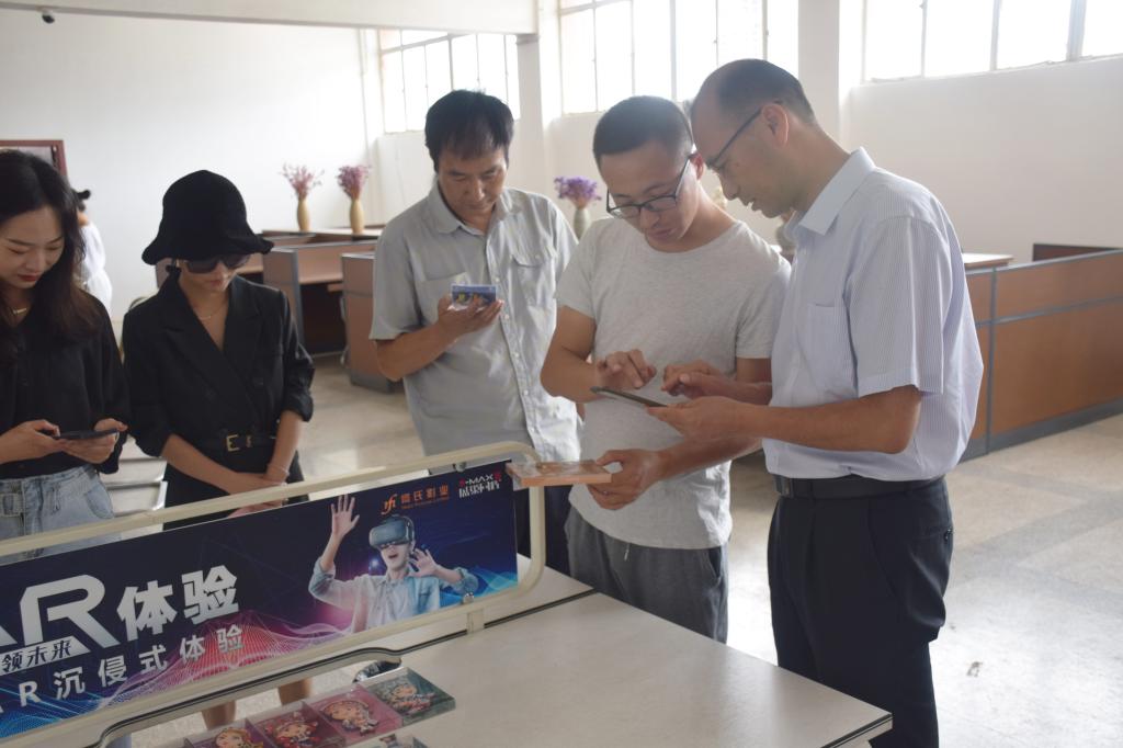 图为旅游与酒店管理学院书记张向英、副书记李永祥参观何氏影业室三下乡宣传组 摄