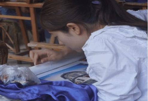 在工作人员的引导和讲解下,实践队认真参观刺绣展,坊内陈列着众多精美的绣品,从古朴的撒花绣、扣花绣、齐花绣、挑花绣到现代创新的空心针绣、机绣、乱针绣等,每一幅绣品都有着精细的做工、精美的图案和绚丽的色彩搭配。随后,实践队员来到白绣教学班,在专业绣娘欣然的指导下亲身体验白族刺绣。队员们从最基本的穿针引线开始,逐步学习刺绣的技巧,并逐渐领悟到刺绣的精髓。通过亲手刺绣,团队成员对白族刺绣的复杂性和艺术性有了更深刻的理解。