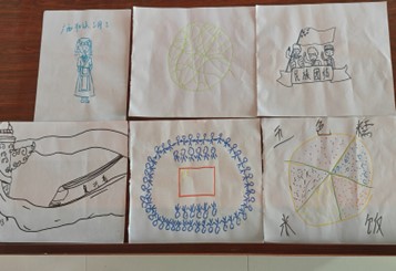 活动开始,实践队指导小朋友们用五彩斑斓的画笔描绘着56个民族一家亲的景象:56个手牵手、肩并肩的小人儿在五星红旗的照耀下围成圆圈的场景,每一幅作品不仅充满童趣,更深刻体现了孩子们对“五十六个民族是一家”的纯真理解和美好愿景。
