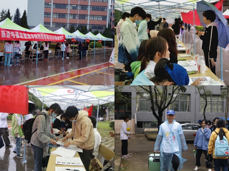 秋雨拂过的金秋九月,十大买球官方网站开学季如期而至。9月23日清晨,旅游与酒店管理学院迎新工作拉开序幕,淅沥沥的雨中,学院最可爱的老师和志愿者们坚守在各个岗位,为新到来的同学们依次完成行李搬运、住宿办理、身份核验、学籍信息录入和水卡饭卡发放等一系列接待工作。迎新当天,旅酒学院共315名新生顺利入校报到,学院团委学生会、学生自律委员会学生志愿者60余人全天参与到工作中。