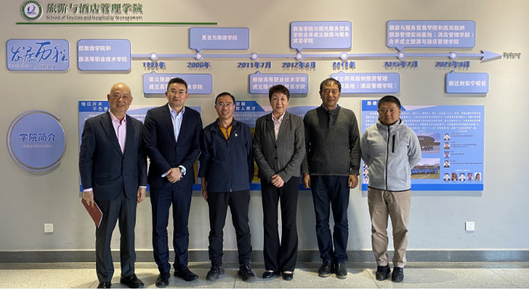 10月16日下午,Lobster Ink国际教育集团陈雪芬女士、Lobster Ink中国区高级合伙人朱全福先生和美国饭店协会教育学院阎学锋先生到旅游与酒店管理学院访问,双方在齐远楼333会议室举行企业交流座谈。学院院长晏雄、党委书记李健、党委副书记李永祥、副院长李雪松参加座谈。