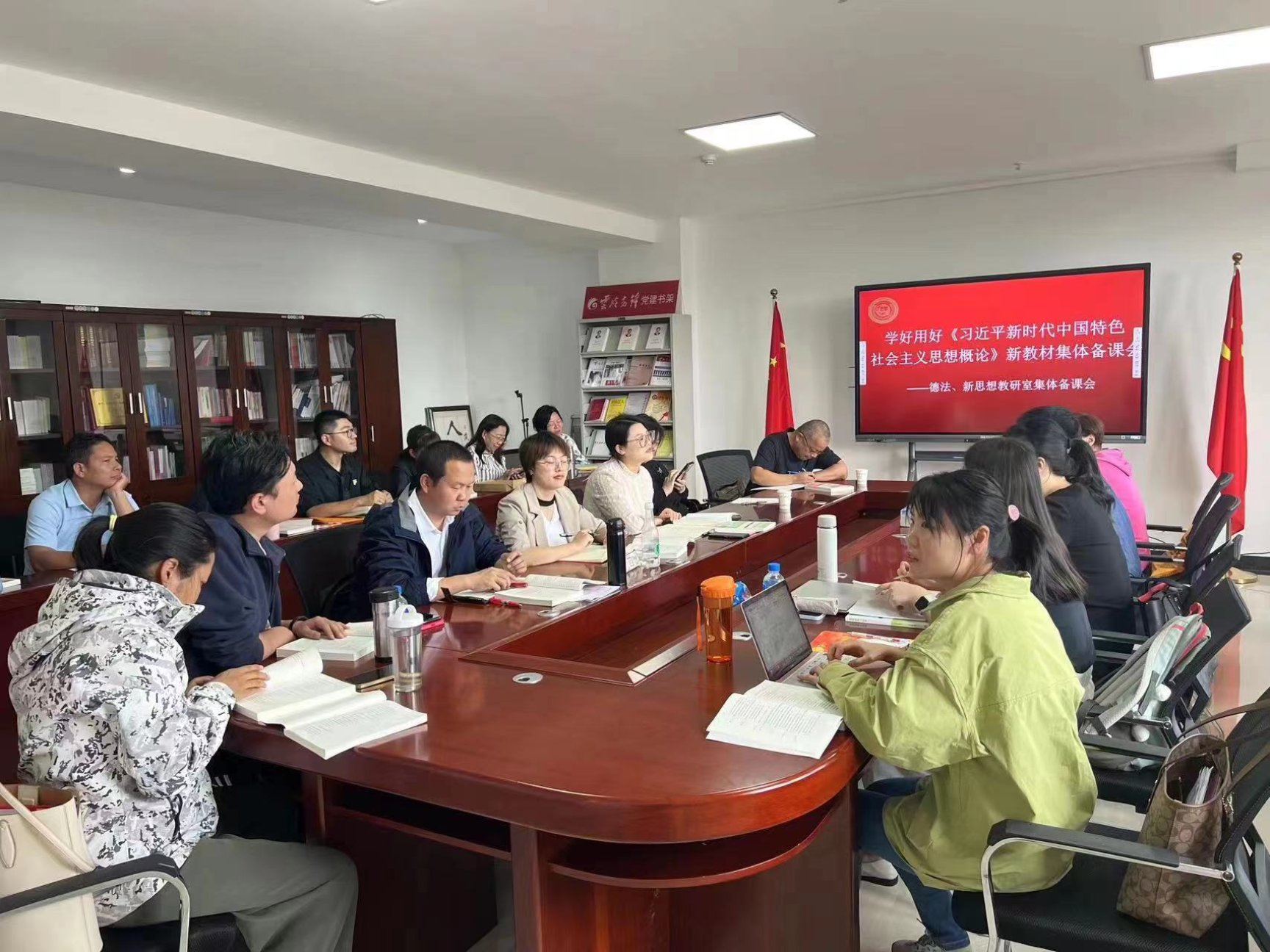 新学期,《习近平新时代中国特色社会主义思想概论》教材全国发行,走进大学课堂。这是第一部全面系统阐述习近平新时代中国特色社会主义思想的统编教材,是高校思想政治理论课的权威用书。为了用好新教材,学好新思想,打造春风化雨的思政金课,9月15日下午,我院在龙泉路校区英华苑411会议室举行《习近平新时代中国特色社会主义思想概论》集体备课会,学院领导及老中青三代思政课教师集体备课、交流研讨。