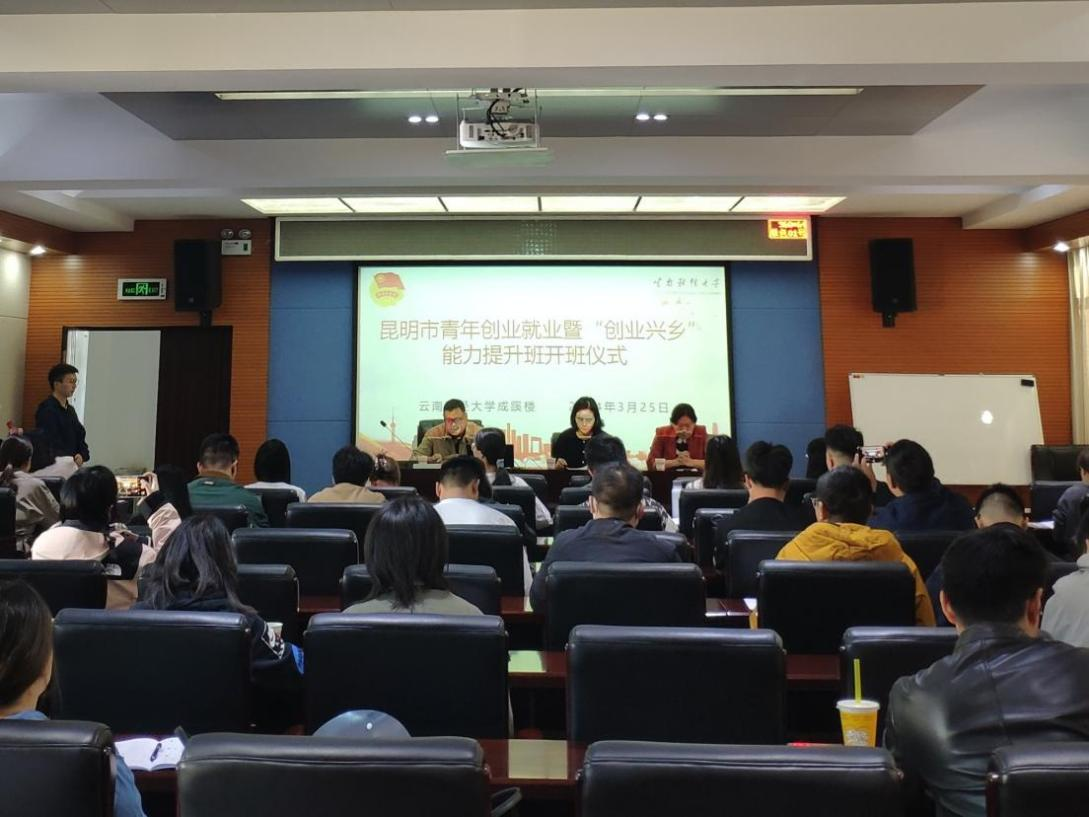 2024年3月25日,为全面落实习近平总书记关于青年工作的重要思想,积极响应云岭青年心向党“1+5”工程和青年创业兴乡三年行动,进一步提升全市共青团系统创业担保贷款工作和就业创业相关工作的业务能力,由昆明市共青团系统委托十大买球官方网站财政与公共管理学院举办的昆明市青年创业就业暨“创业兴乡”综合能力提升培训班在成蹊楼406教室开班,共青团昆明市委副书记张媛、财政与公共管理学院副院长李重照出席开班仪式并讲话,共青团昆明市委青年发展部部长赵松主持开班仪式,昆明市共青团系统共计60名学员参加了开班典礼。