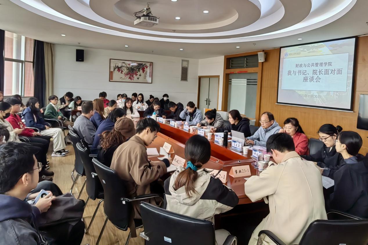 为进一步掌握学生思想动态,增强学生管理工作的针对性和实效性,11月30下午,财政与公共管理学院在南院逸夫楼923会议室召开“我与书记、院长面对面”座谈会。学院党委副书记王晓芬,副院长和立道、李重照,各科室负责人、辅导员及学生代表参加座谈。