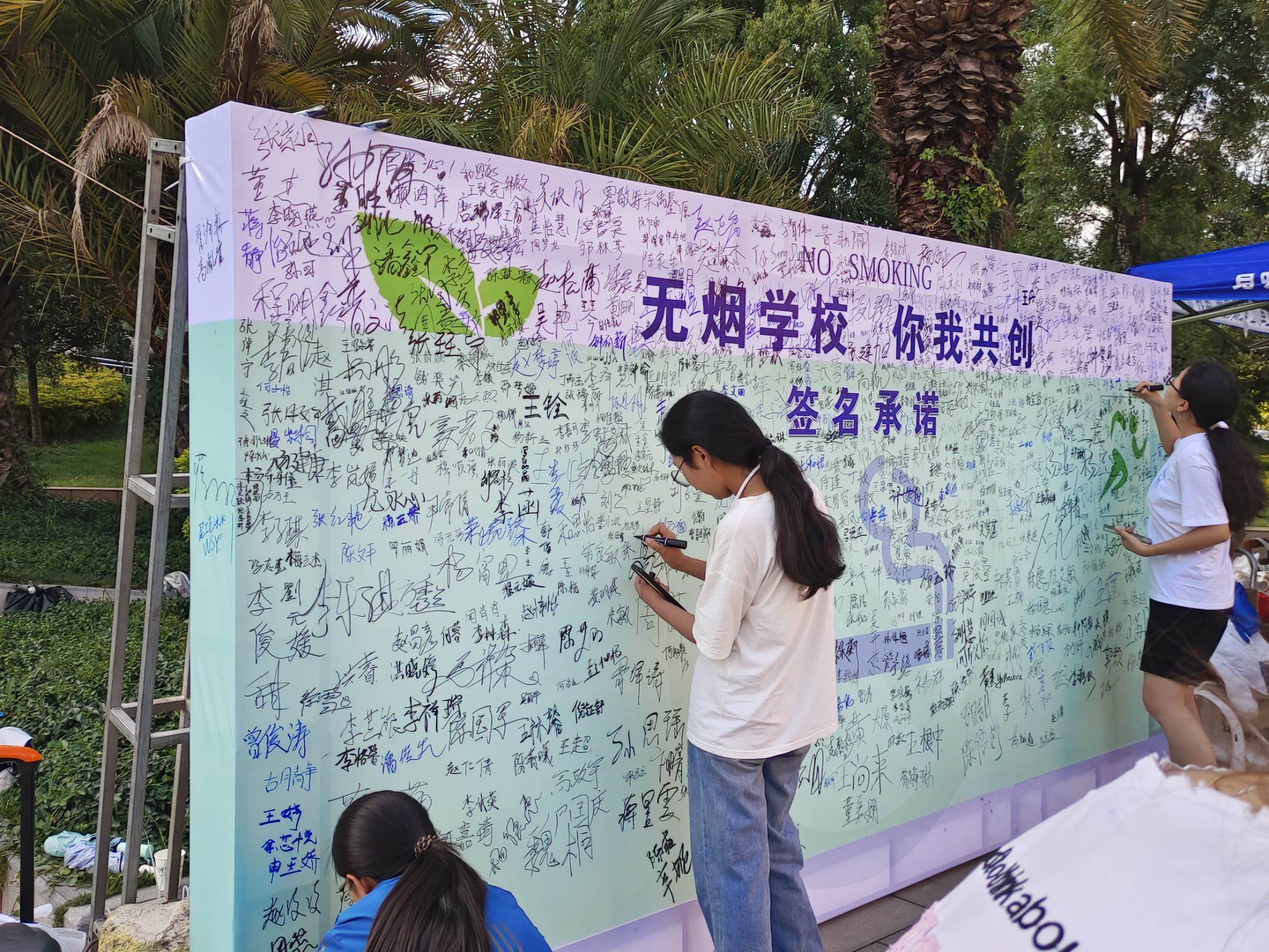 此次活动共设有五个打卡点,每个打卡点都有物资供给处和医疗点,为同学们提供矿泉水、糖果等物资和医药保障。在活动打卡点,同学们可以调整休息、补充能量,还可以获得“薄荷行动”品牌活动的限量版贴纸。参与的同学们在新阳广场集合进行活动签到并领取荧光手环,然后在“无烟校园,你我共建”承诺墙上签名开始按照预定的路线参加到跑步运动中。同学们互相鼓励、互相支持,共同享受着运动的快乐。活动结束后,同学们统一学习了控烟知识,领取了禁烟宣传手册。