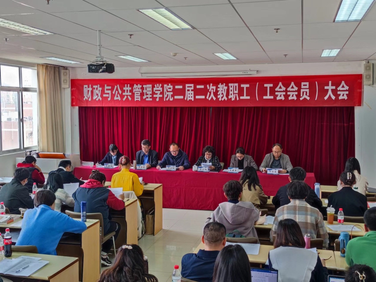 3月15日,财政与公共管理学院第二届第二次教职工暨工会会员大会在逸夫楼717举行,会议围绕“凝心聚力谋发展 砥砺奋进开新局”主题,圆满完成各项议程。