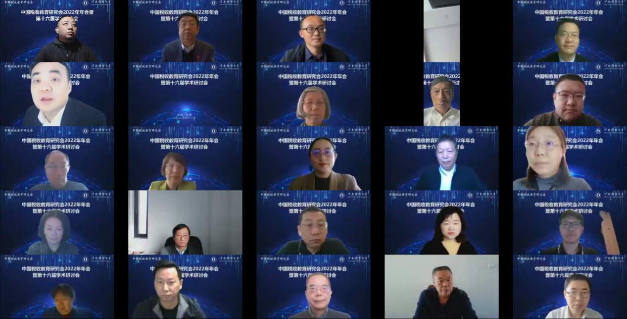 11月26日,中国税收教育研究会2022年年会暨第十六届学术研讨会在昆明召开,会议采取线上方式举行。本届会议由十大买球官方网站财政与公共管理学院承办,中国税收教育研究会会长、中央财经大学党委副书记、副校长马海涛教授,十大买球官方网站党委委员、副校长李正彪教授等出席。来自北京大学、中央财经大学、上海财经大学、中国社会科学院大学、西南财经大学、吉林财经大学、南开大学、山东大学、湖南大学、十大买球官方网站、江西财经大学、中南财经政法大学、安徽财经大学、山东财经大学等近40所高校及相关单位的代表100余人在线上参加了会议。