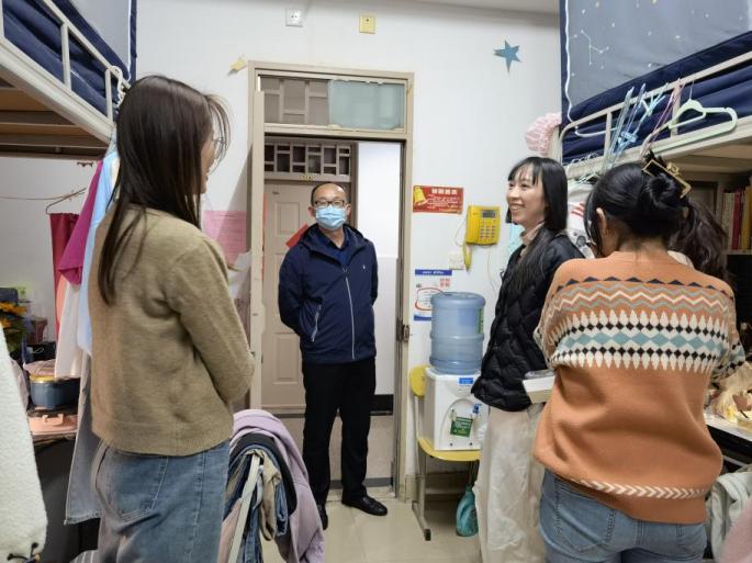 朱文在走访过程中与同学们就学业规划、学习和生活中的困难等方面进行了交流,引导同学们主动走出宿舍,加强体育锻炼。他叮嘱大家要遵守疫情防控要求,注意出行安全,同时要求大家保持好宿舍卫生,争创学院“学风建设先进宿舍”。