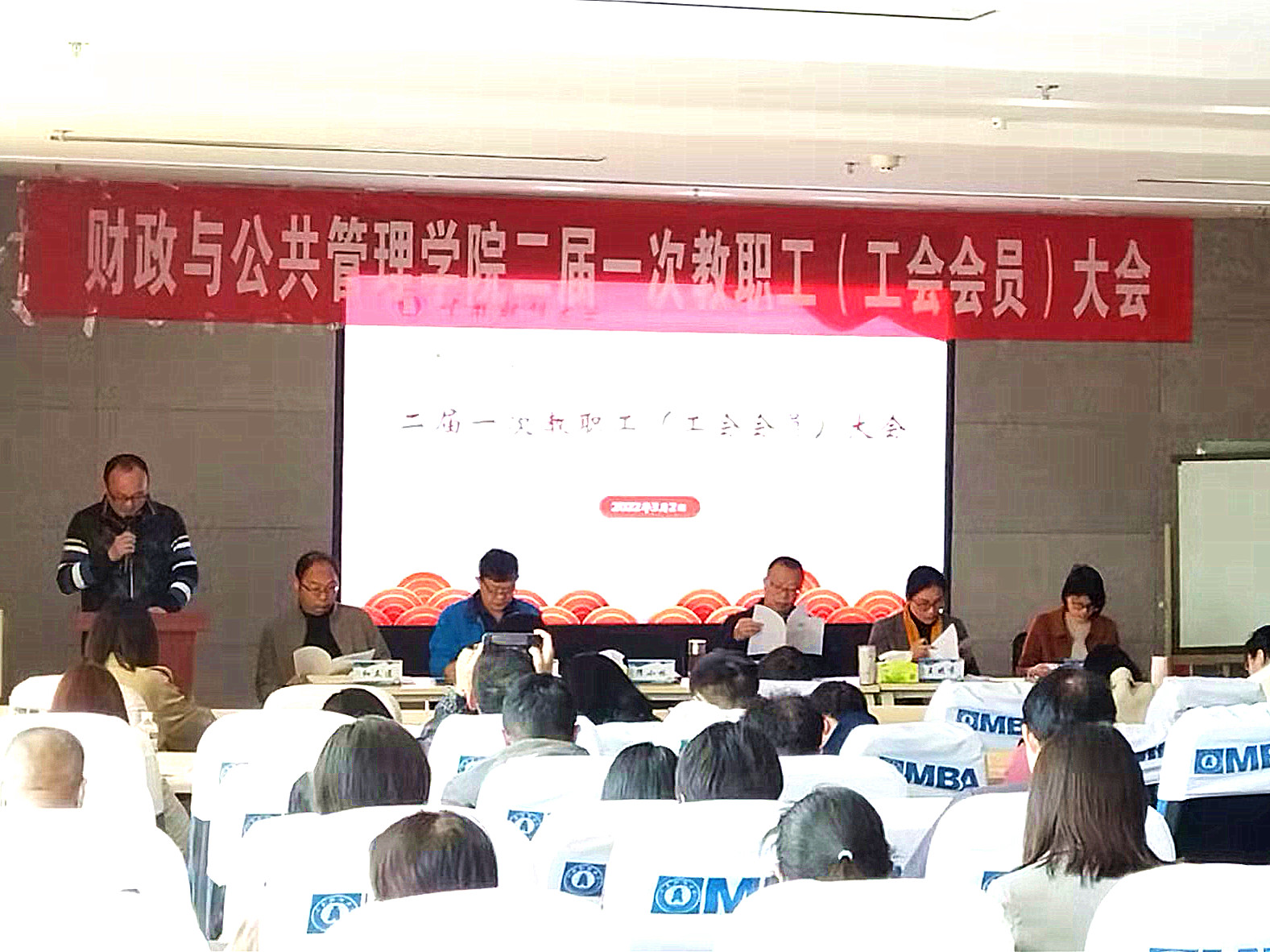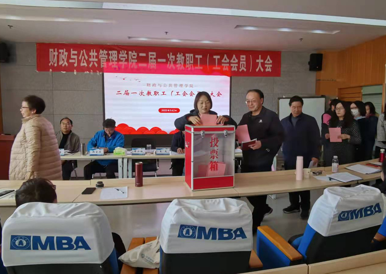 3月2日下午,财政与公共管理学院二届一次教职工大会暨工会会员大会在逸夫楼410室召开,选举产生新一届工会委员会委员。