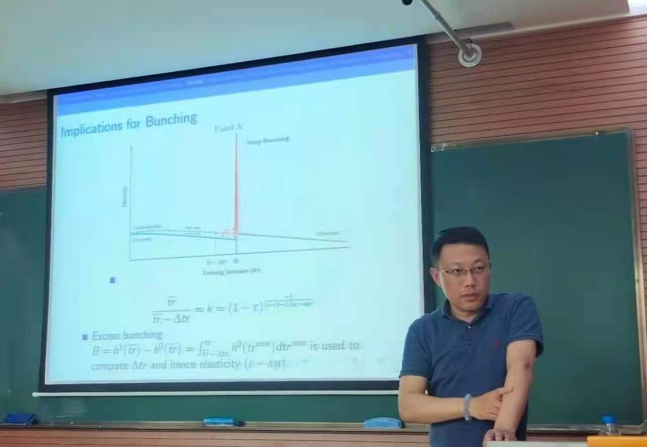 陆毅教授以“Employee Training and Firm Performance: Inference from Causal Estimates under Kink Setting”为题,为大家详细讲述Bunching(群聚)方法的两种类型:Kink和Notch。讲座中,陆教授在介绍Bunching方法的基础上,进一步向大家展示了该方法在当前学术领域的适用范围以及实际应用。同时,在讲座尾声的互动环节中,陆教授耐心解答了我院师生的提问。整场讲座,陆毅教授展示的学术研究的严谨缜密逻辑和渊博学识赢得了全场师生的热烈掌声。