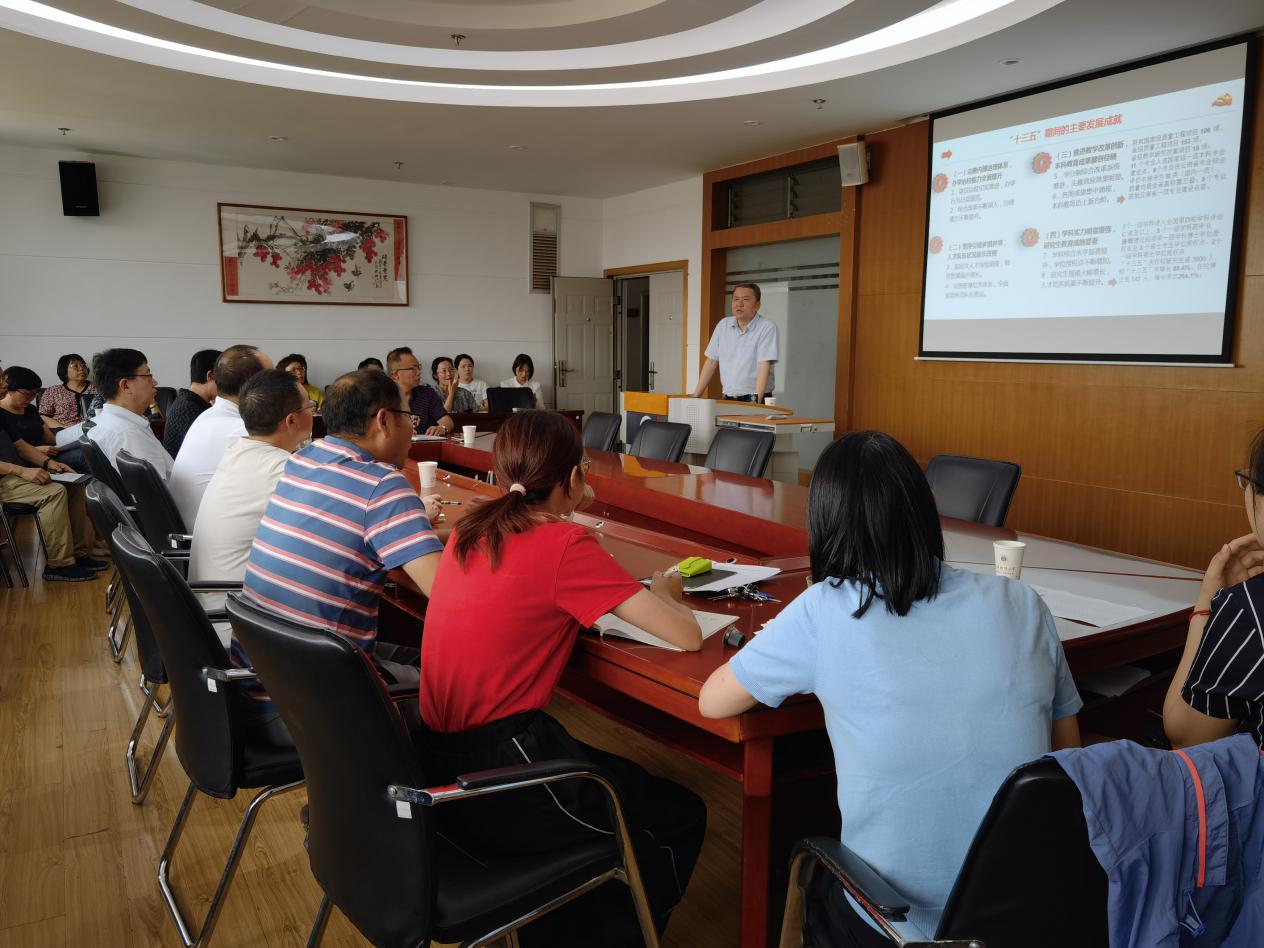 缪小林院长围绕学校十四五发展规划和王副校长提出的意见和建议,对标学校规划要求,重点分析了学院发展面临的问题短板,从师资队伍建设、专业建设与本科教学、学科建设与研究生教育和科研方面深入分析,提出了要以立德树人为根本,以为党育人为国育才为目标,紧抓学科与专业建设,深化学院各项领域改革。