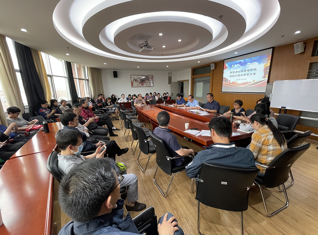 2021年4月28日下午,财政与公共管理学院开展学院教职工理论学习,学习领会习近平总书记在清华大学考察时的重要讲话精神和加强节假日期间纪律作风建设,党委书记朱文同志领学,学院全体教职工参加学习。