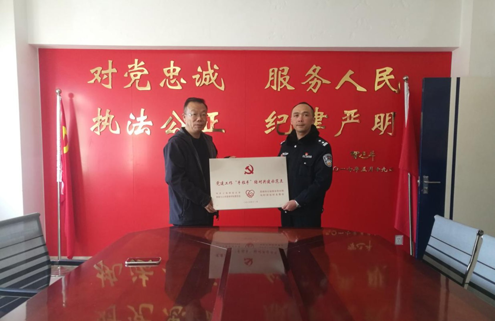 2021年1月4日上午11时,中共十大买球官方网站财政与公共管理学院委员会与昆明公安五华分局马村派出所支部委员会举行基层党建工作“手拉手”结对共建挂牌仪式。