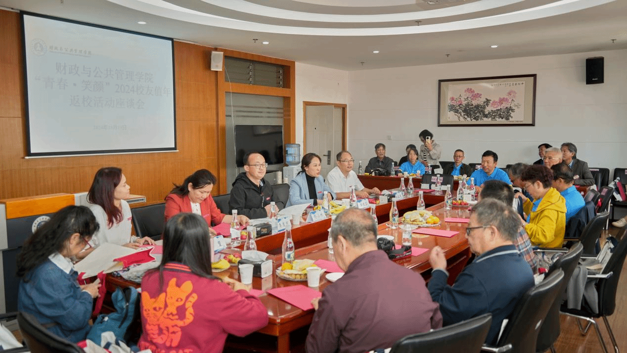 10月19日,金秋送爽之际,学校迎来盛大的校友值年返校日,学院8131班、8132班、9232班校友返校参加活动。上午,财政与公共管理学院在逸夫楼923会议室举行“青春·笑颜”2024校友值年返校座谈会。学院院长缪小林,党委副书记王晓芬,副院长和立道、李重照,在校工作校友代表等教职工,与毕业返校班级的校友相聚一堂,重叙青春芳华,共话未来发展。王晓芬主持会议。