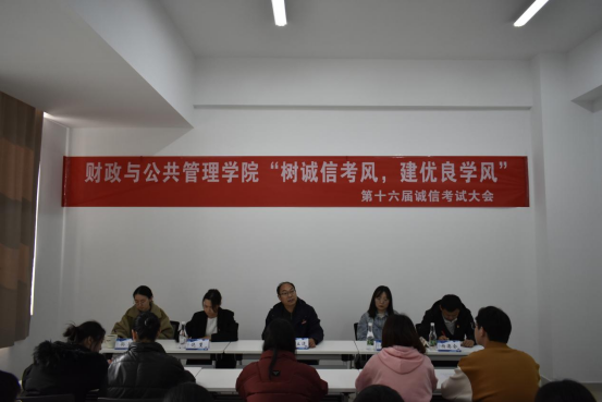 12月27日至1月2日,财政与公共管理学院分别在安宁校区安华5C104和龙泉路校区南院逸夫楼923会议室召开“树诚信考风,建优良学风”第十六届诚信考试大会。财政与公共管理学院副院长和立道,办公室主任赵珺蓉,学生管理科科长饶篁,教学管理科科长李亚,辅导员孙玚、陈渝迅老师,学生党员、团员、学生骨干代表及各班班委代表参加会议,学院团委负责人杨德会主持会议。