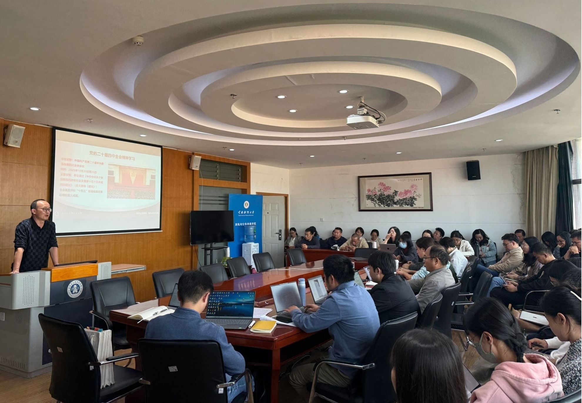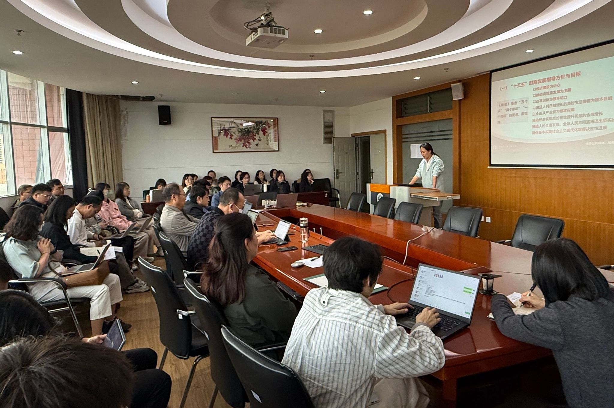 10月29日,财政与公共管理学院组织专题学习党的二十届四中全会精神,学院全体教职工参与学习,会议由副院长于洋航主持。