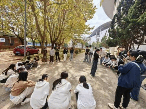 出宿舍,让青春绽放活力。财政24-2和事业25-1团支部分别以“撕名牌”“击鼓传花”等游戏增进同学情谊,在宿舍外交流互动、展示自我。