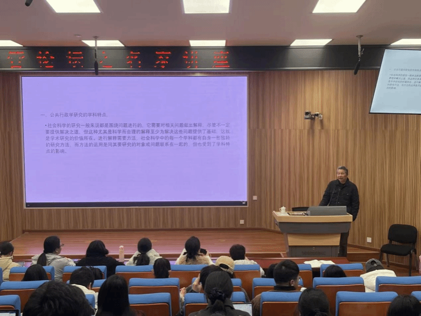 竺乾威教授从公共行政学的学科特性切入,从公共行政学学科特点、研究中的问题意识与理论创新等角度,为师生做了深入浅出的主题讲座。报告结束后,竺乾威老师和同学们还就论文选题与写作、研究方法等内容进行交流。