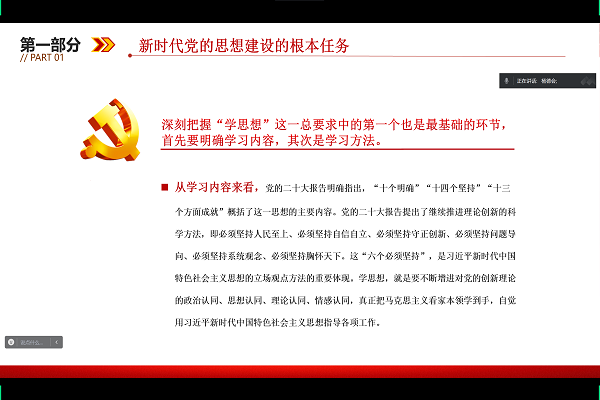 杨德会同志围绕新时代党的思想建设的根本任务,强调要深刻把握“学思想”明确学习内容,坚持全面系统的学习方法;始终保持共产党人的政治本色;把思想转化为推动工作的强大力量,强调支部同志要加强自身理论学习,坚持理论联系实际,做到学用相长;在学以致用中建新功立新业,作为学生党员要在学习、工作、生活等各个方面充分发挥先锋模范作用。