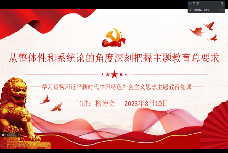 2023年8月10日,财政与公共管理学院本科生第三党支部组织支部同志在线上开展学习贯彻习近平新时代中国特色社会主义思想主题教育党课,本次党课由支部书记杨德会同志主讲。