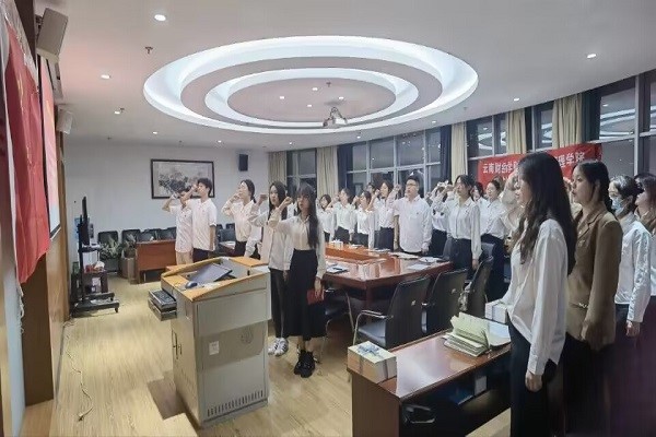 杨德会书记对转正的党员同志表示祝贺并为他们送上政治生日卡。随后,支部全体党员重温入党誓词。入党誓词不仅是每一位共产党员的终身标尺,也时刻警醒着党员同志们为共产主义事业而奋斗终身的信心和决心。