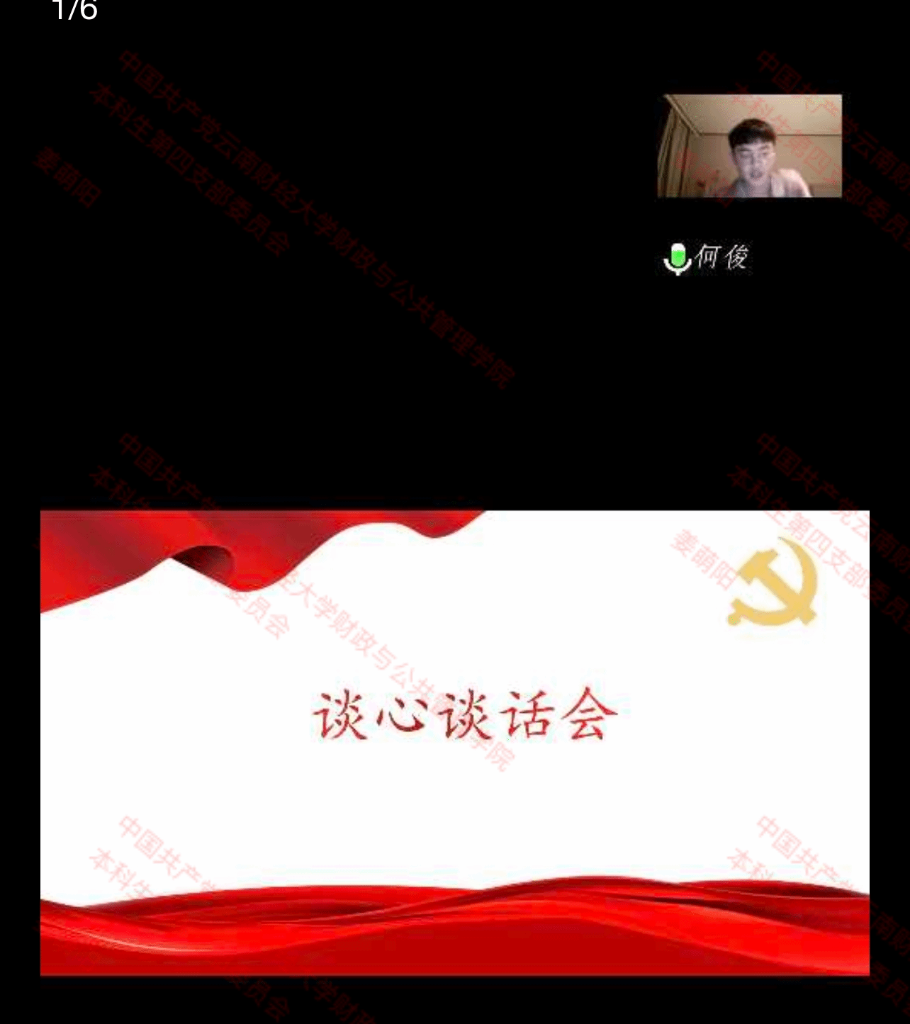 2022年3月8日20:00,本科生第四党支部召开线上支部党员谈心谈话会。党支部书记葛译遥同志主持会议。会上,与会党员积极发言,逐一畅谈个人在思想上、学习、生活、工作等方面的情况及存在的困难与疑惑。
