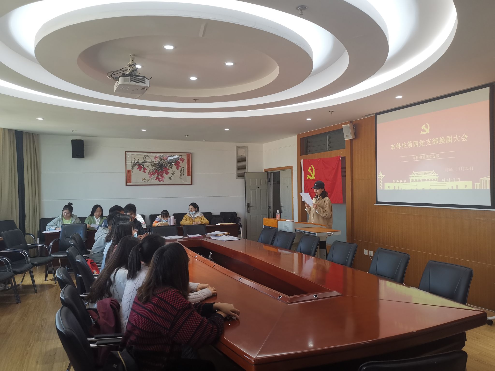 2020年11月25日,本科生第四党支部在逸夫楼923召开了支部换届大会,本次会议葛译遥老师主持。