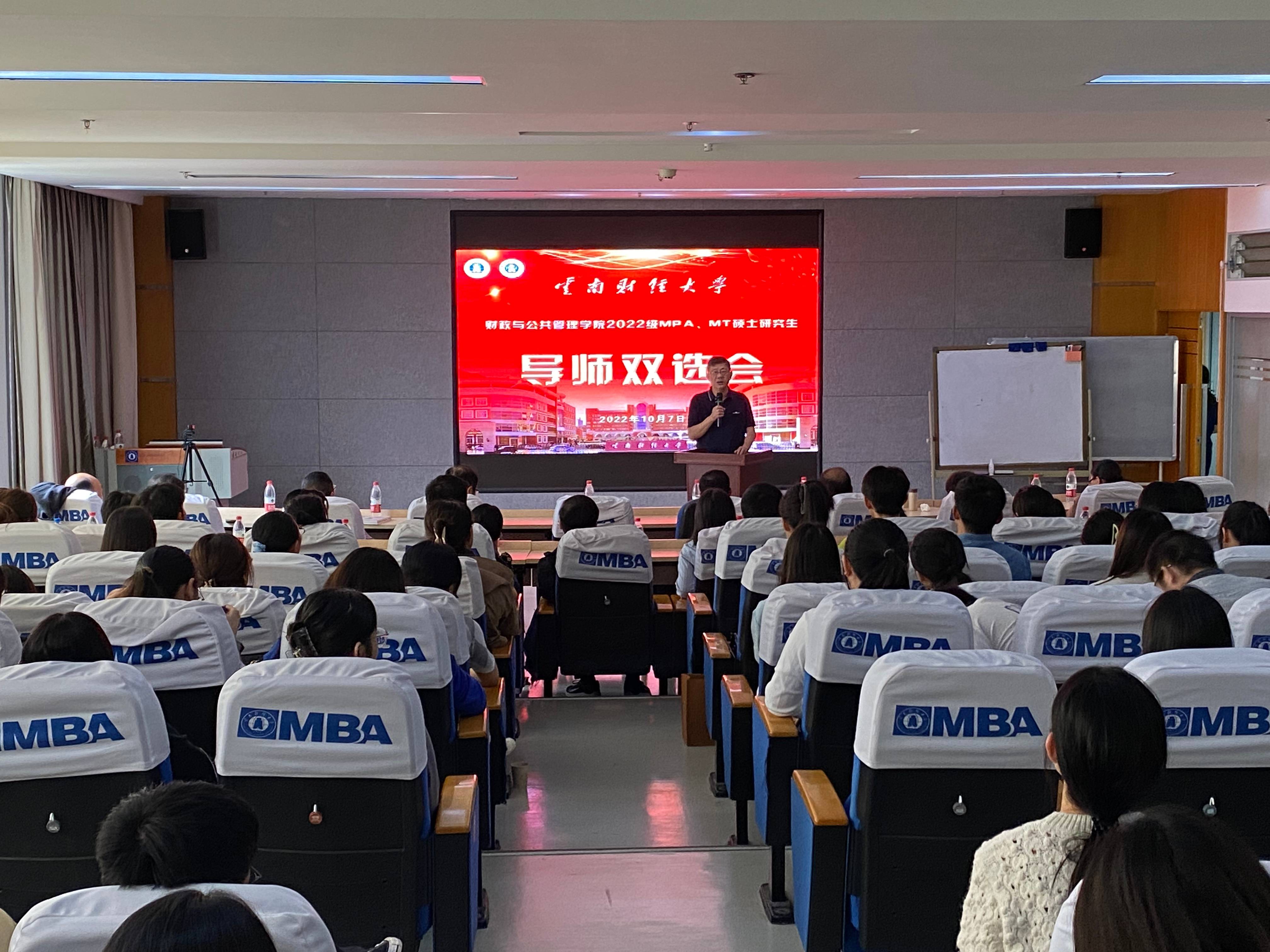 为促进专业硕士导师和学生更好地交流,2022年10月7日下午,由财政与公共管理学院专业硕士教育发展中心组织的2022级MPA MT导师双选会暨导师聘任仪式顺利举行,会议采用线上线下相结合的方式,向2022级全体专业硕士研究生介绍和展示了导师风采。大会邀请到场的老师逐一向同学们介绍了自己的研究方向以及对学生的要求,学院副院长韩全芳教授向导师们颁发了专业硕士指导教师聘书,会后学生们与导师进行了热烈的交流与互动。
