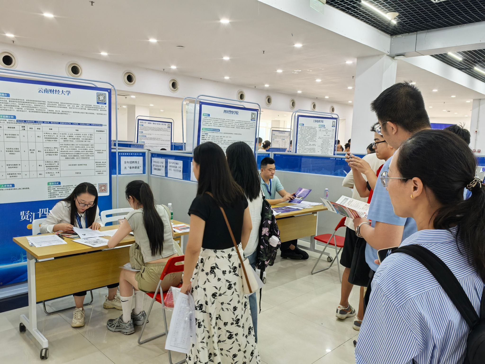 此系列招聘活动,人事处精心策划,通过专设招聘展位,粘贴宣传海报、发放宣传手册、面对面交流和加微信方式积极宣传学校的发展优势、专业特色及人才政策。向各高校优秀博士全面介绍学校的招聘条件和人才待遇,就博士关心的职业发展、科研团队平台、教学科研考核情况等问题进行耐心细致解答。招聘活动中积极为博士推荐适合岗位,其中博士专任教师(专业技术岗位)、马克思主义理论专任教师(专业技术岗位)和专职辅导员(专业技术岗位)吸引了上百名博士的关注。