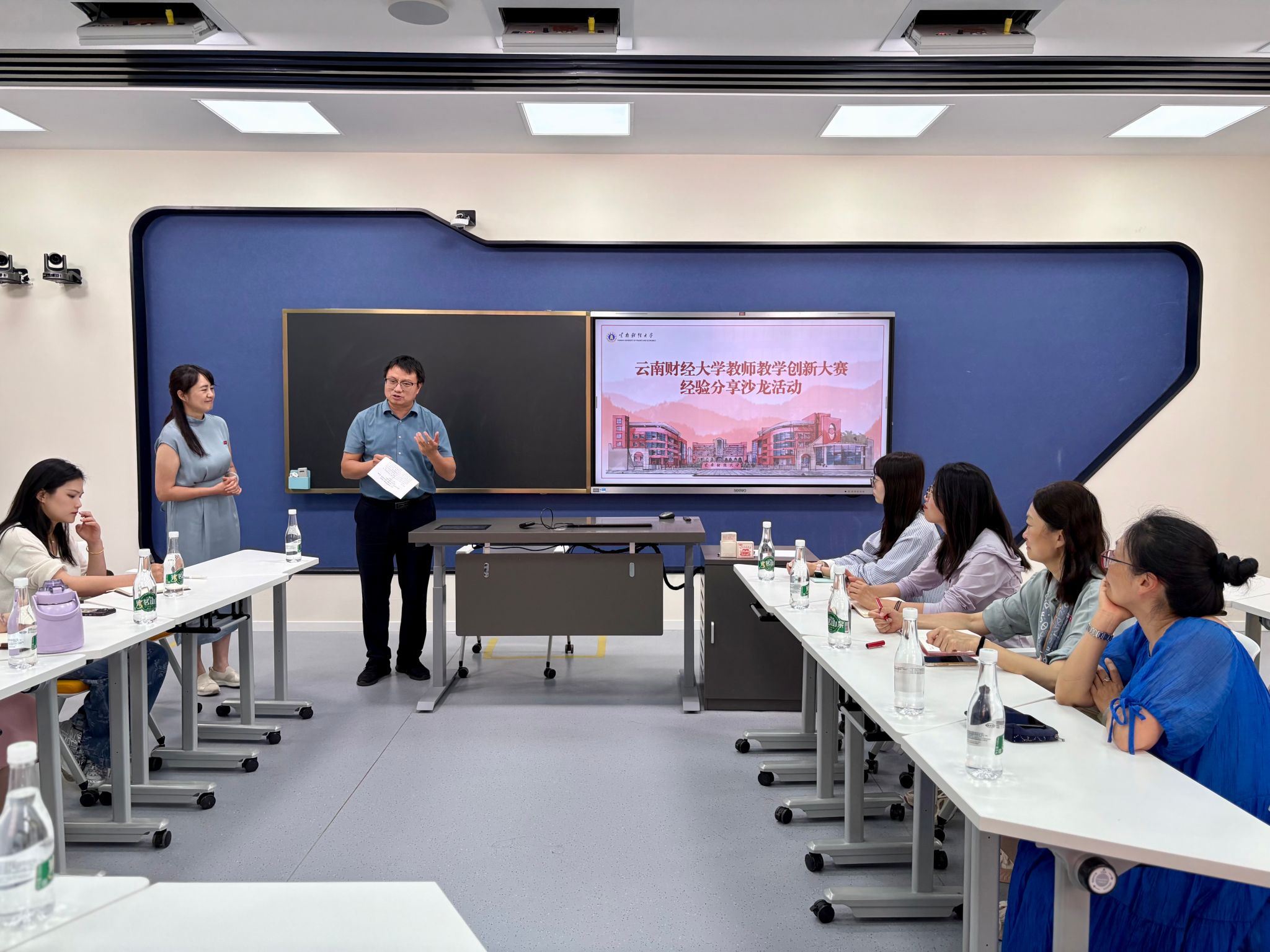 本次沙龙由云南省一流本科课程《环境科学》团队负责人、物流与管理工程学院李少娟老师主持,围绕“线下课堂教学活动设计——让课堂更有温度、有深度”展开研讨,这也是“云南省教师教学创新能力提升项目”的重要环节。李少娟老师从设计到实践的深度突破为题,结合《环境科学》教学示范,分享两大创新:重构教学内容,用知识链条解码绿色经济逻辑;创设12种特色活动,提升学生高阶能力与专业思维。她结合“三北防护林工程”案例,介绍“小组对抗接龙”设计及注意事项,引发了现场教师的讨论。