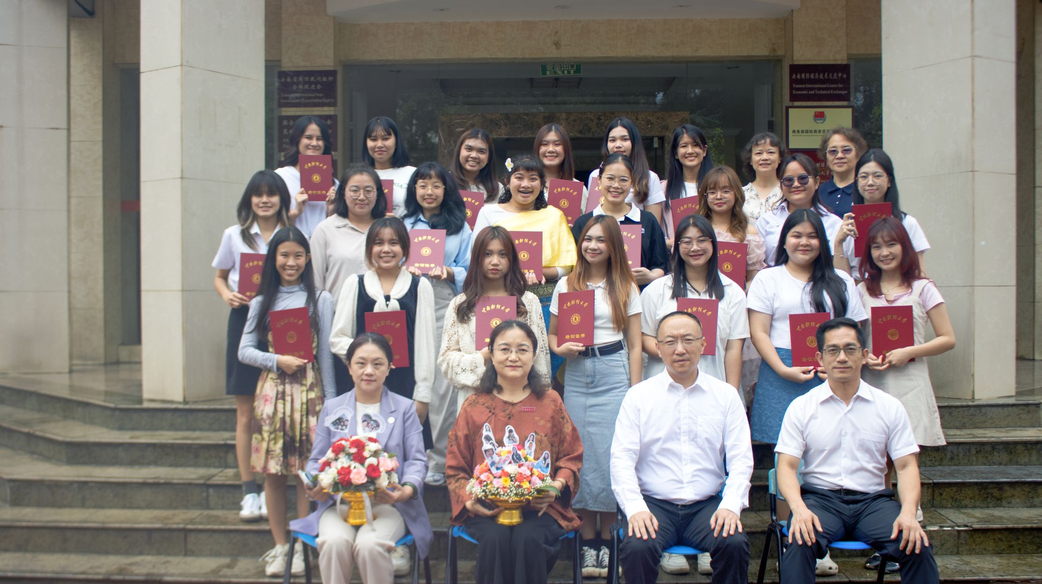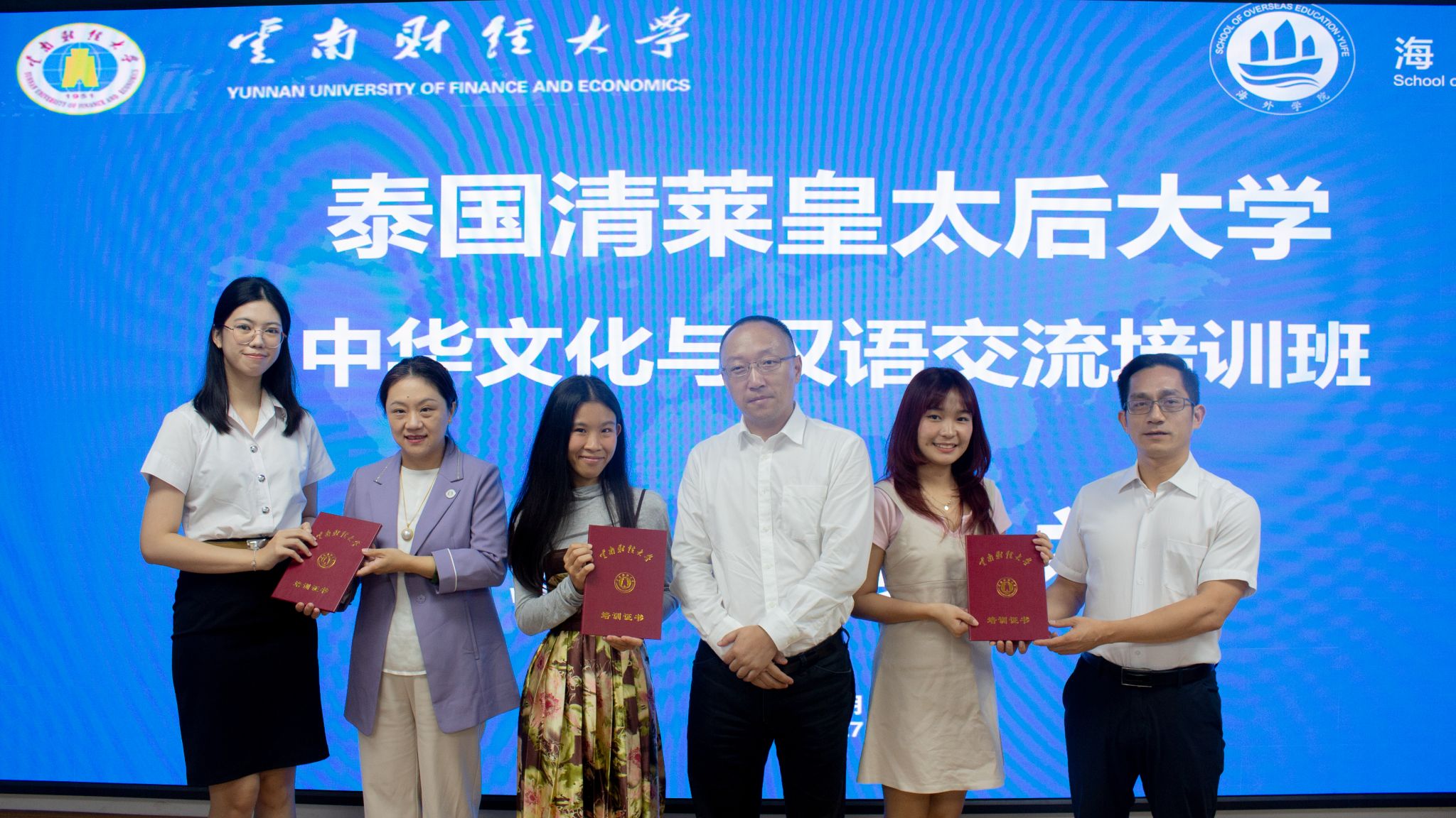 2024年6月27日,泰国清莱皇太后大学中华文化与汉语交流培训班结业典礼在景贤楼201举行,宣传部副部长李晓霞,对外合作交流处处长、海外学院院长余泳,海外学院党支部书记龙希国,海外学院副院长李来孺出席典礼。