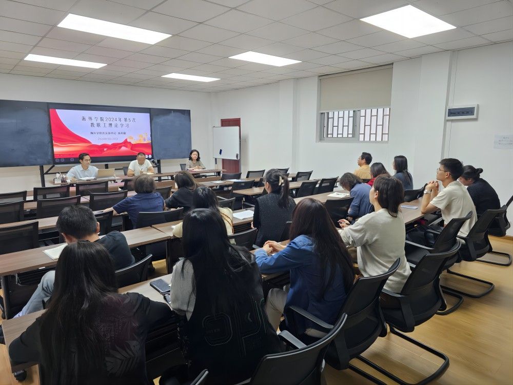 2024年9月30日下午,海外学院围绕“深入学习贯彻党的二十届三中全会暨全国教育大会精神”组织开展2024年第五次教职工理论学习。海外学院党支部书记龙希国作主讲和领学。