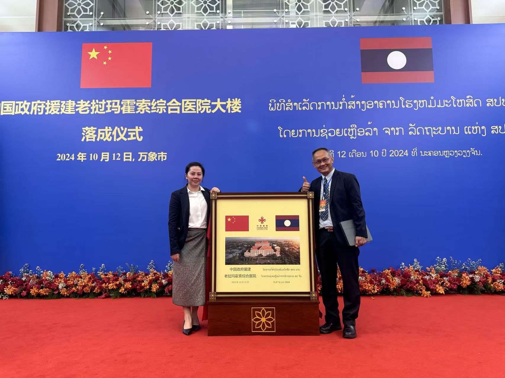 老挝时间1012日,国务院总理李强在万象同老挝总理宋赛共同出席中国政府援建老挝玛霍索综合医院大楼落成仪式。买球老挝籍校友Mongkhoun SODALA(中文名:宋达拉)作为老方成员参加仪式。