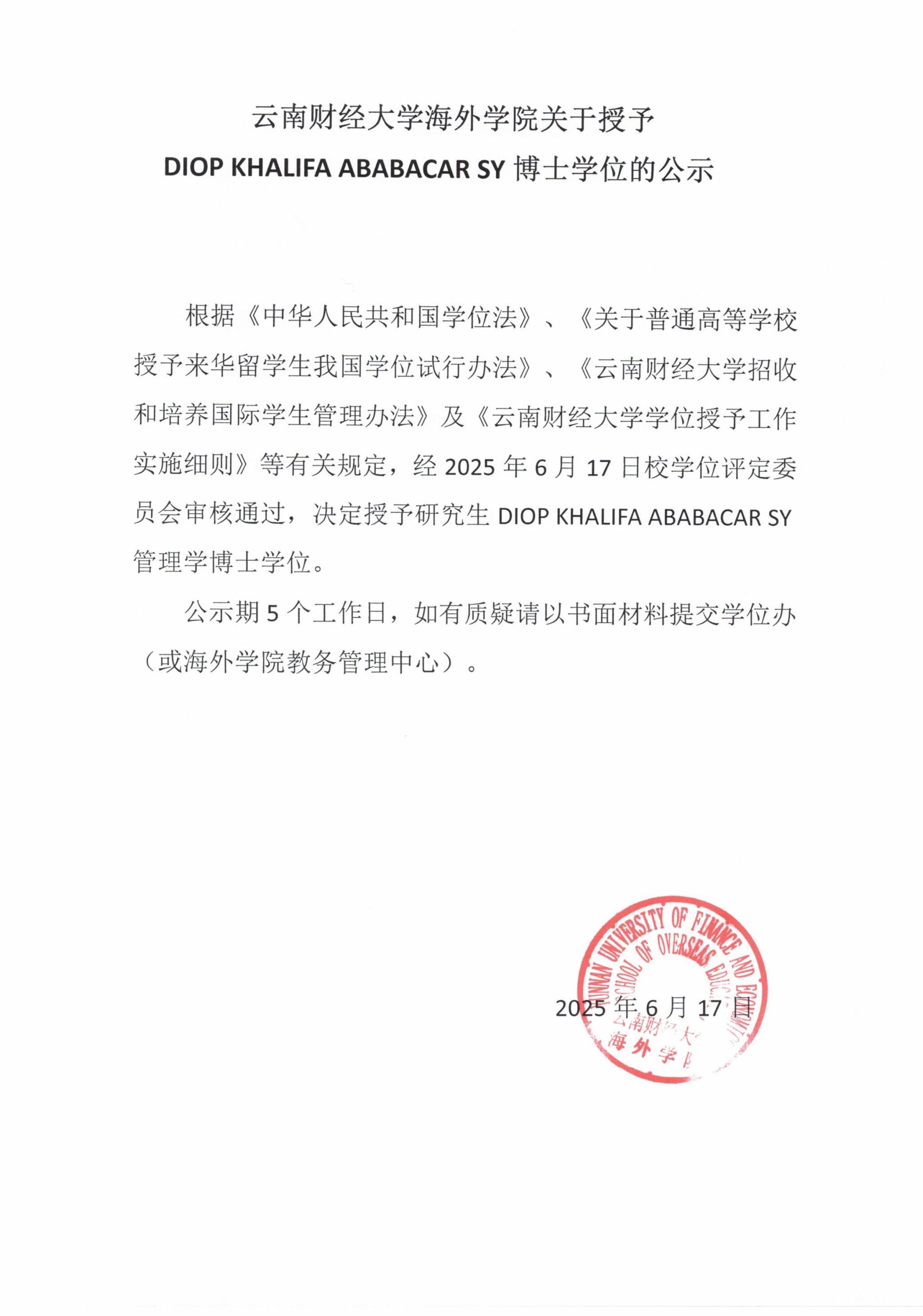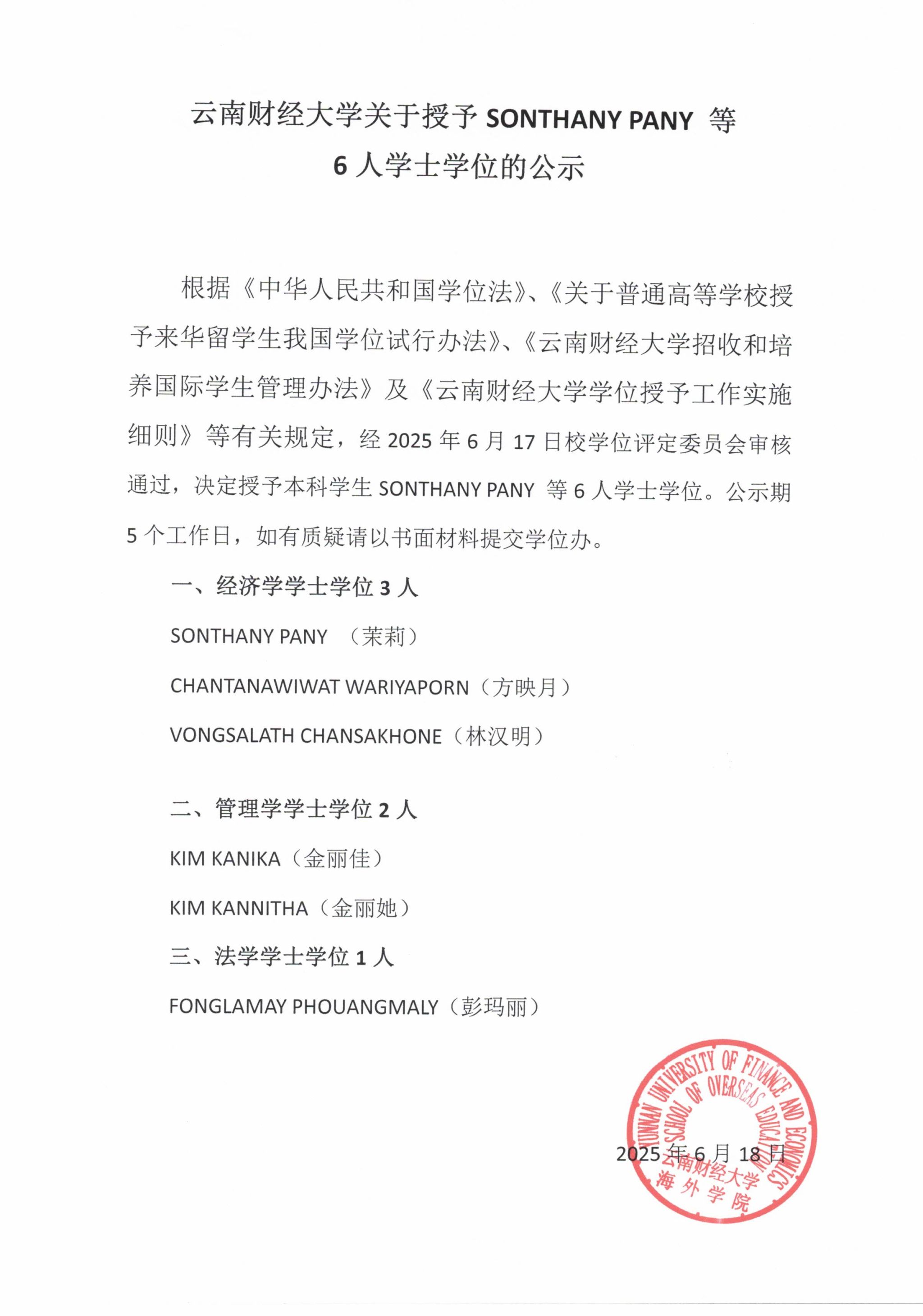 海外学院2025届来华留学生学位授予公示